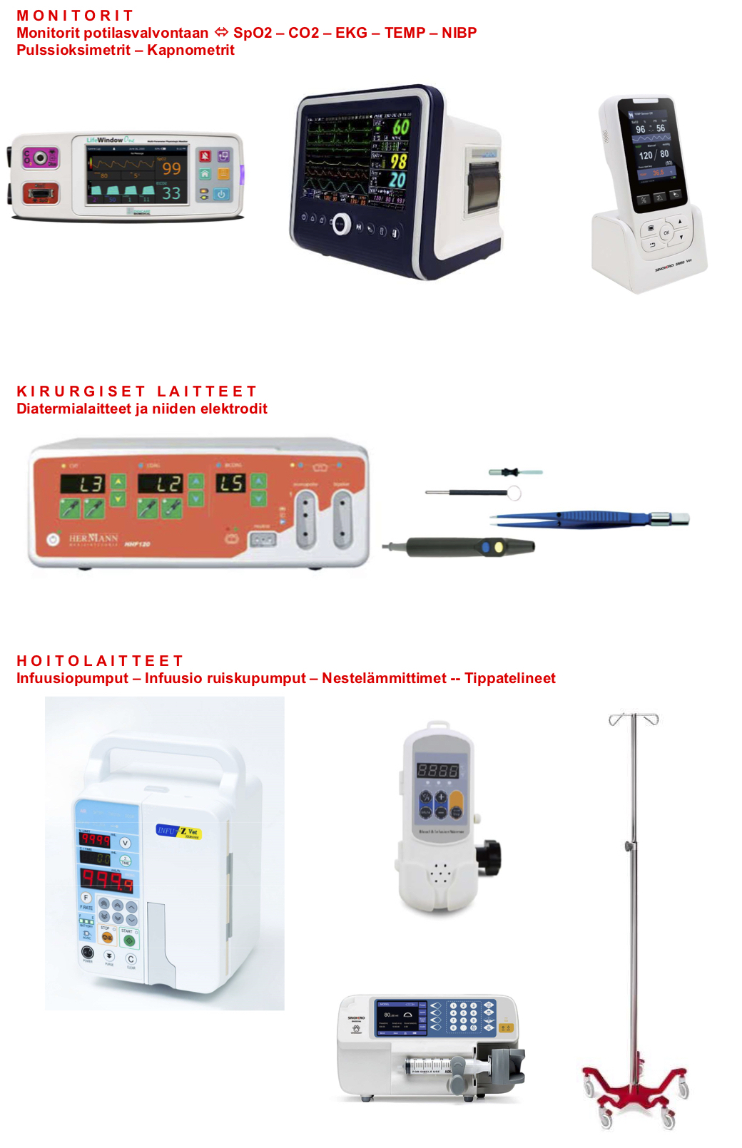 o Anestesiamonitorit ⇔SpO2 – CO2 – EKG – TEMP – NIBP